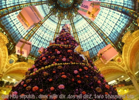 This picture was taken under the dome of Les Galeries Lafayette, the biggest “grand magasin” world wide, located boulevard Haussman in Paris. It is free to have a look and take pictures, without shopping. Thousand of people come here during Christmas holidays to watch Galeries Lafayette’s Christmas windows.